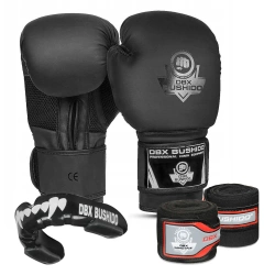 Zestaw bokserski: rękawice bokserskie Black Master + owijki + ochraniacz na zęby