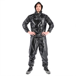 W naszym sklepie znajdziesz dresu sauna wykonane z materiału PVC o grubości 0,12 mm. Wszystkie komplety zawierają bluzę z kapturem i spodnie w uniwersalnym rozmiarze. Ściągacze w nadgarstkach, pasie i kostkach, a także zamek błyskawiczny szczelnie blokują dopływ powietrza. Nasze dresy odchudzające są komfortowe i w żaden sposób nie ograniczają swobody ruchu w czasie treningu.