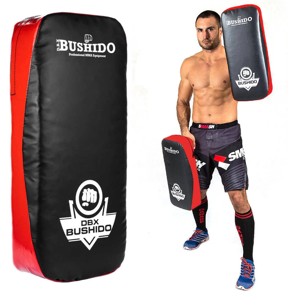 • Professional Thai-type training target. The shield has an elongated profile, which protects the partner's elbow, which is very important, especially during kicking training.