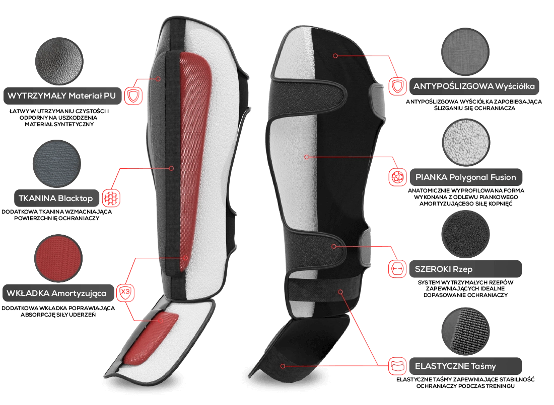 Anatomical Polygonal Fusion foam, anti-slip lining, and a triple Velcro closure ensure the guard stays in place, absorbing the force of kicks. Made from a combination of PU material and Blacktop fabric, they are built to withstand the toughest training schedules.