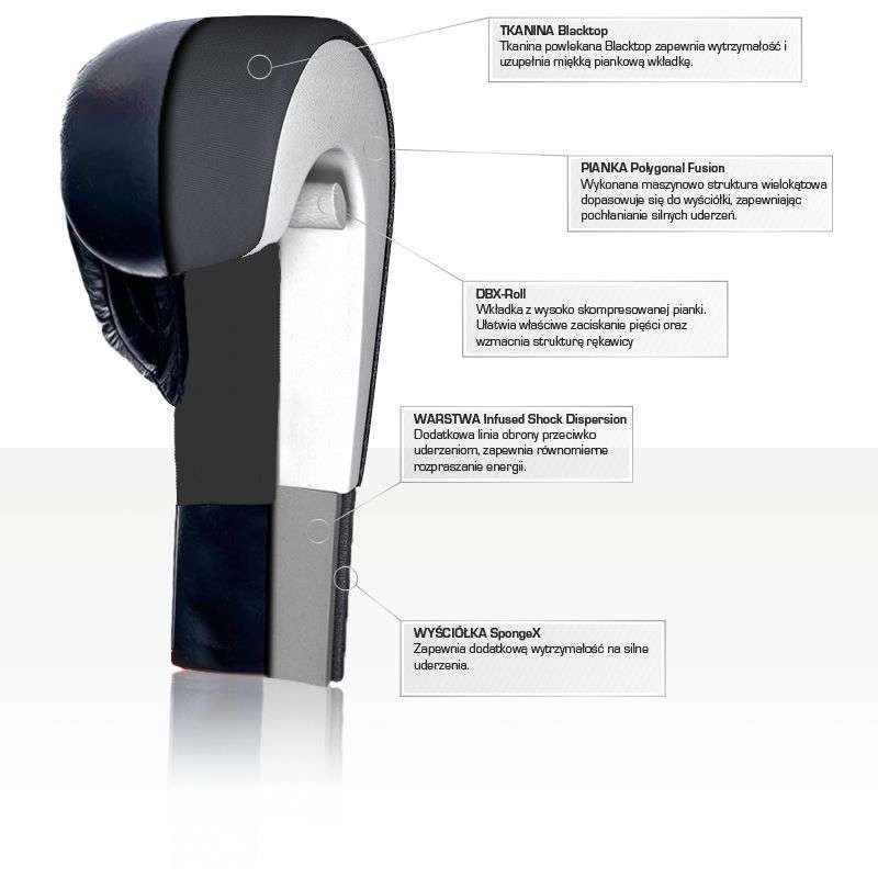 The DBD-B-2v9 boxing gloves are crafted from reinforced synthetic leather and feature an inner lining made from a special fabric that enhances durability.