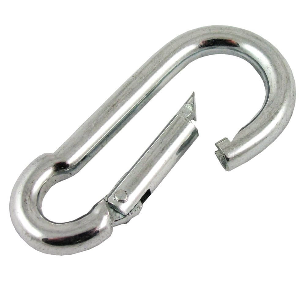 Steel carabiner manufactured in accordance with the DIN 5299C standard. It is a universal connecting element, ideal for the ends of ropes and chains in training equipment.