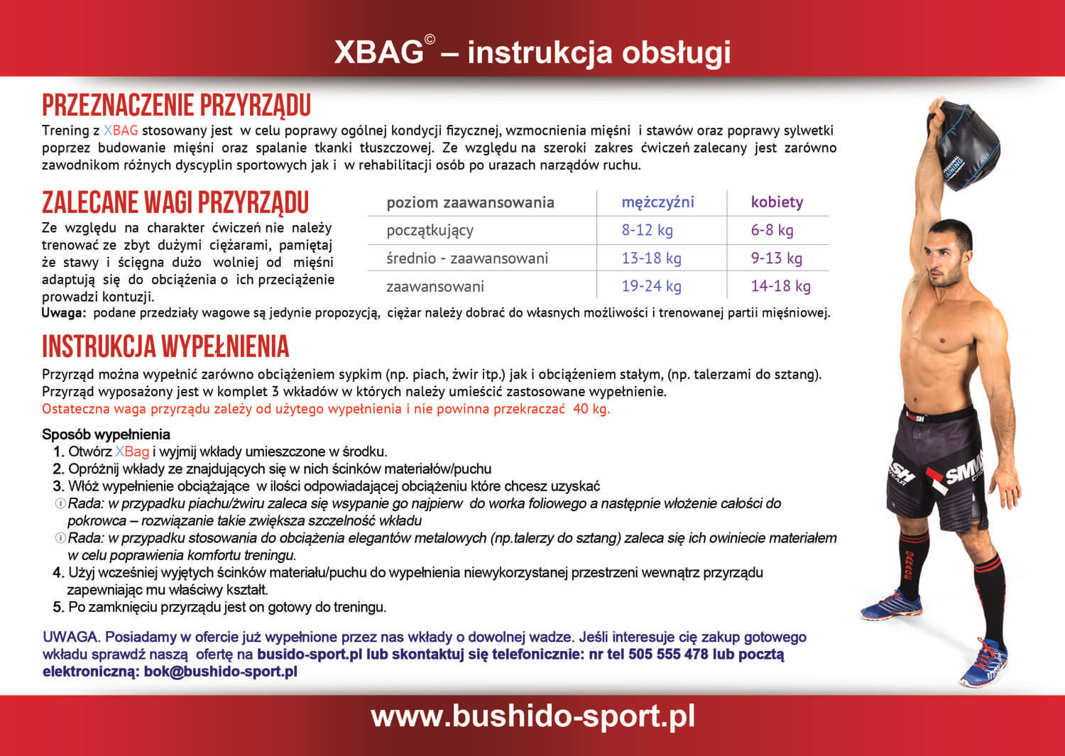 Due to its design, XBAG allows you to perform all exercises performed with a kettlebell and at the same time allows you to adjust the weight - so you do not have to buy the entire set of Kettelball weights - just XBAG is enough to ensure continuous training progress.