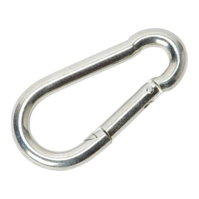Karabińczyk stalowy wykonany zgodnie z normą DIN 5299C. Jest to uniwersalny element łączący, idealny do zakończeń lin i łańcuchów w sprzęcie treningowym.