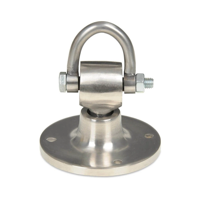 Profesjonalne mocowanie obrotowe do platform bokserskich, wykonane w 100% ze stali nierdzewnej. Jest to kluczowa cecha, która zapewnia wyjątkową trwałość i odporność na korozję, nawet w wilgotnych warunkach panujących w salach treningowych.