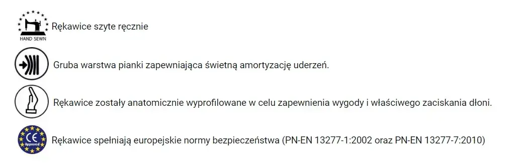 - Rękawice bokserskie treningowe 'Hawk' – rękawice cenione za swoją wygodę i ochronę, zgodne z europejskimi standardami bezpieczeństwa.